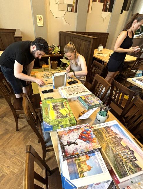 Eine Teilnehmerin reiste aus Bayern, aus dem 240 Kilometer entfernten Erlangen, an. Sie hatte im Internet eine Puzzlerin aus dem Großraum Stuttgart kennengelernt und sich hier bei unserem Stammtisch für ein erstes Treffen verabredet.