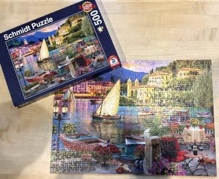 Von der deutschen Firma „puzzleYOU“ erhielten wir zwei ganz besondere Exemplare mit jeweils 1000 Teilen. Diese Puzzles waren in dem sogenannten „Smart Sorted“ – Verfahren hergestellt worden. Mit diesem, inzwischen patentierten Verfahren, möchte es die Firma puzzleYOU ermöglichen, dass auch lebensältere Mitbürger oder Menschen mit Behinderungen, am Puzzlespaß teilhaben können. Die 1000 Teile sind in insgesamt 40 kleine Schachteln unterverpackt, welche einzeln aus dem Karton entnommen werden können. In jeder dieser Schachteln befinden sich jeweils 25 Puzzleteile, welche zusammen gelegt ein Teilsegment des Gesamtmotives ergeben. Dabei sind die kleinen Schachteln so im Karton angeordnet, dass sie immer zueinander passen d.h. der Anschluss an das nächste Segment gegeben ist.