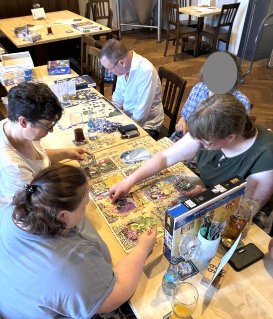 Eine Teilnehmerin reiste aus Bayern, aus dem 240 Kilometer entfernten Erlangen, an. Sie hatte im Internet eine Puzzlerin aus dem Großraum Stuttgart kennengelernt und sich hier bei unserem Stammtisch für ein erstes Treffen verabredet.